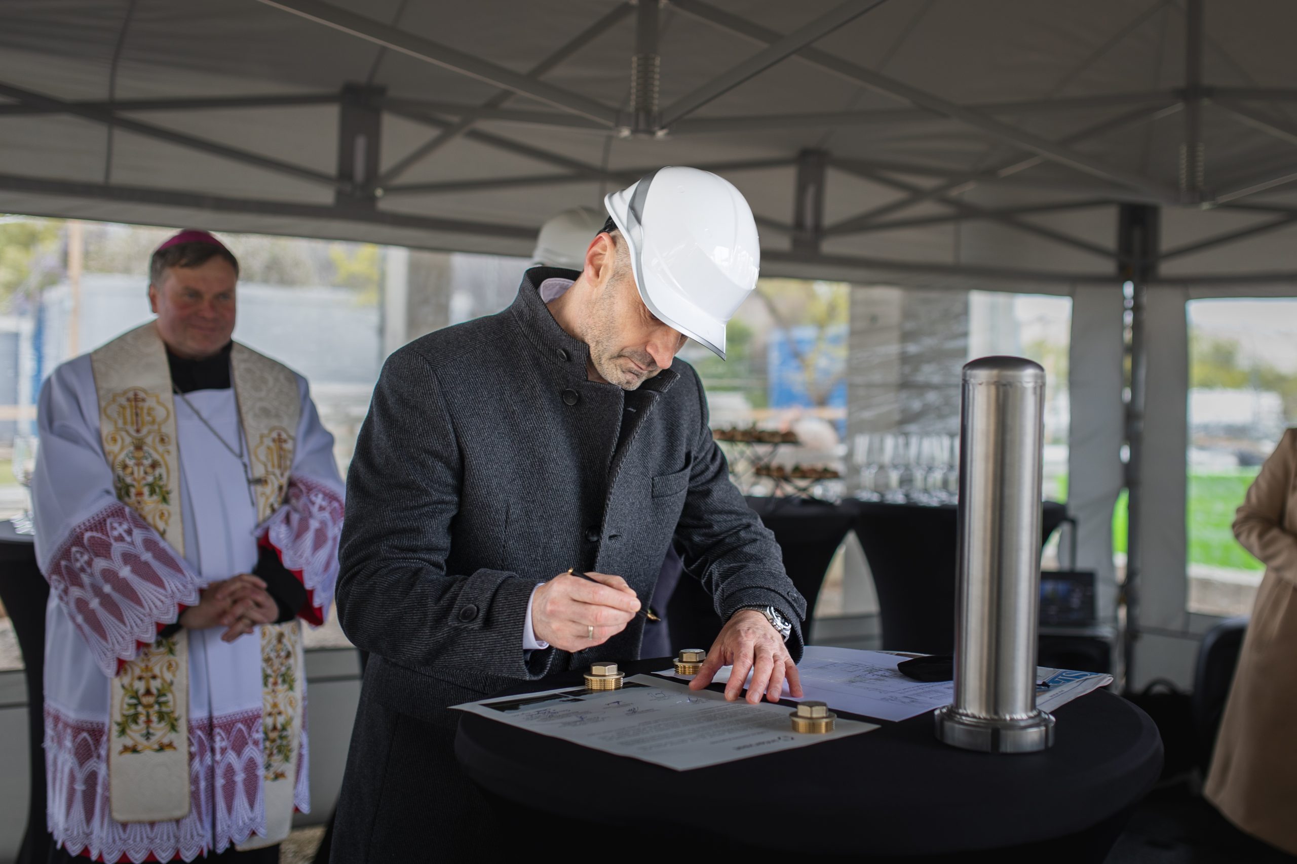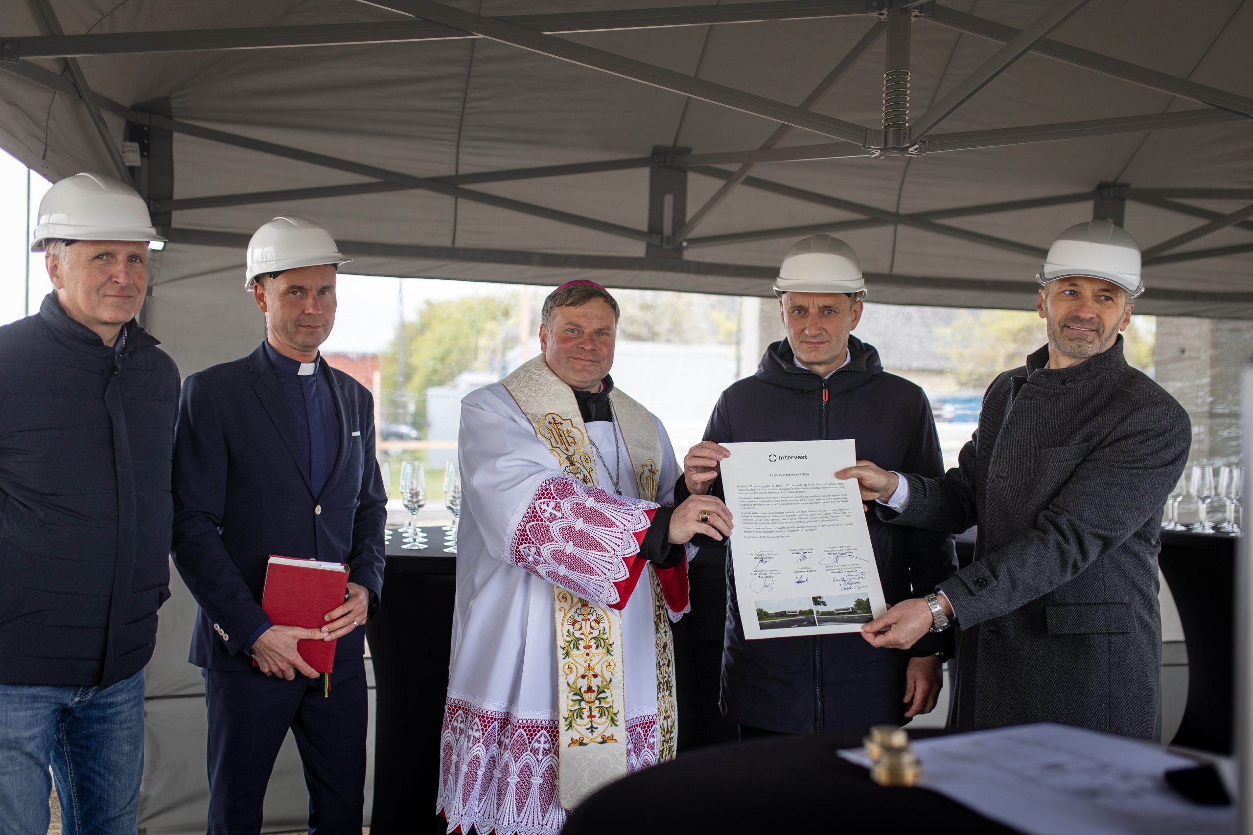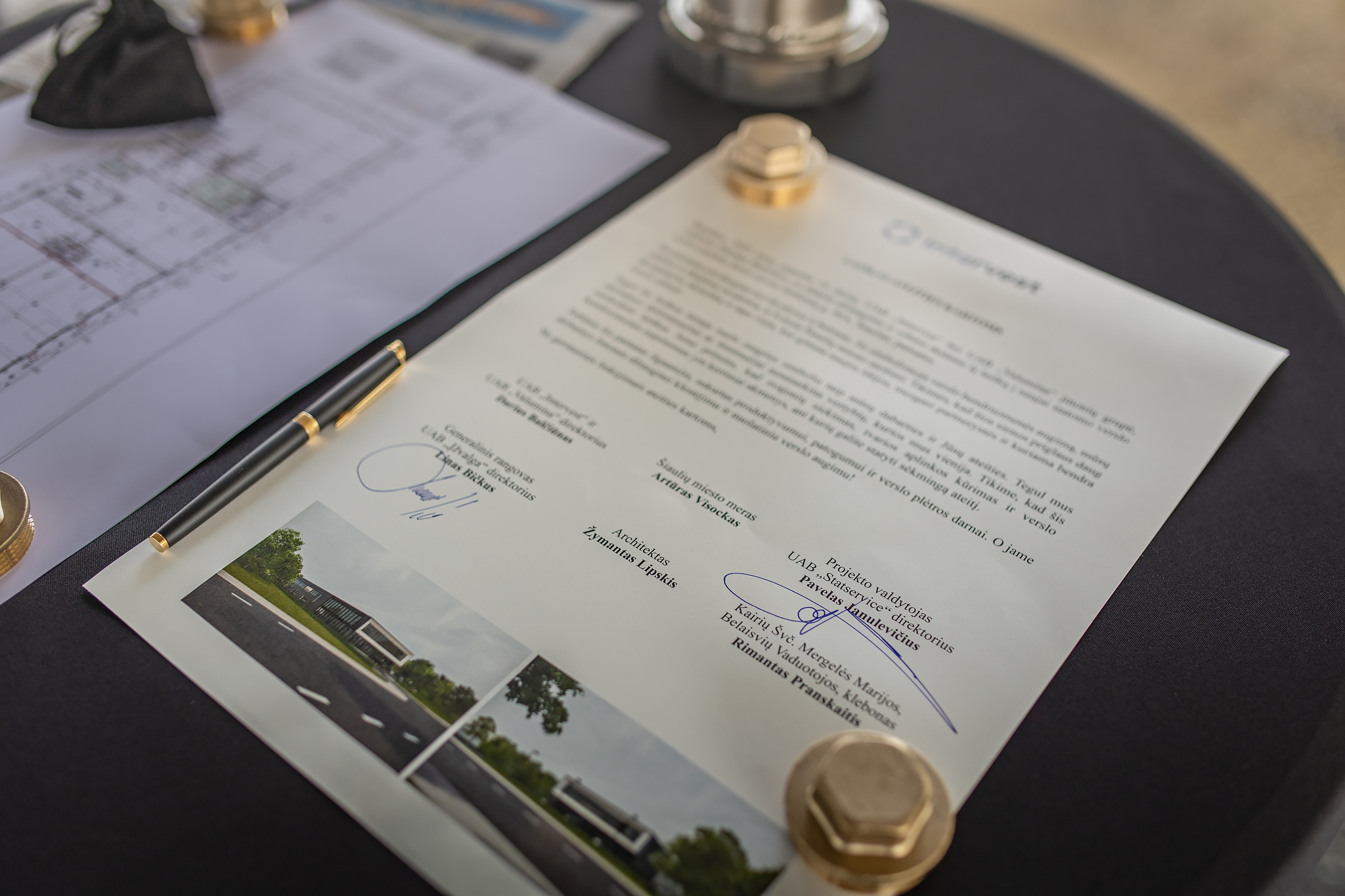 Modernaus verslo centro Šiauliuose VERUS 90A simbolinės kapsulės įkasimo į pamatus ceremonija.